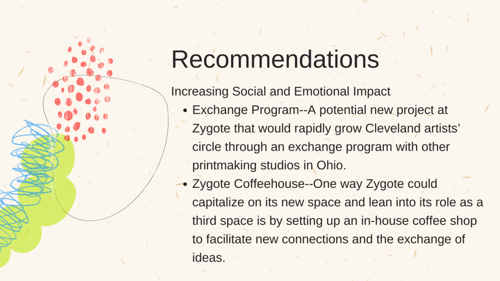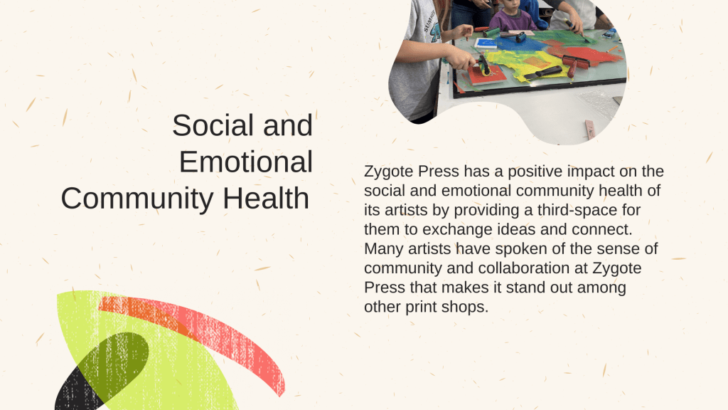 Its artist residencies, exhibitions, youth-centered workshops, and public programs all play a vital role in Cleveland’s creative economy, investing in the potential of Cleveland’s future creatives, thinkers, and leaders. As the nonprofit approaches its 30-year anniversary and prepares to move to a new facility, this study was commissioned to assess how Zygote, a collaborative, community-based printmaking nonprofit organization, has a positive impact on the social, emotional, and economic health of the community.