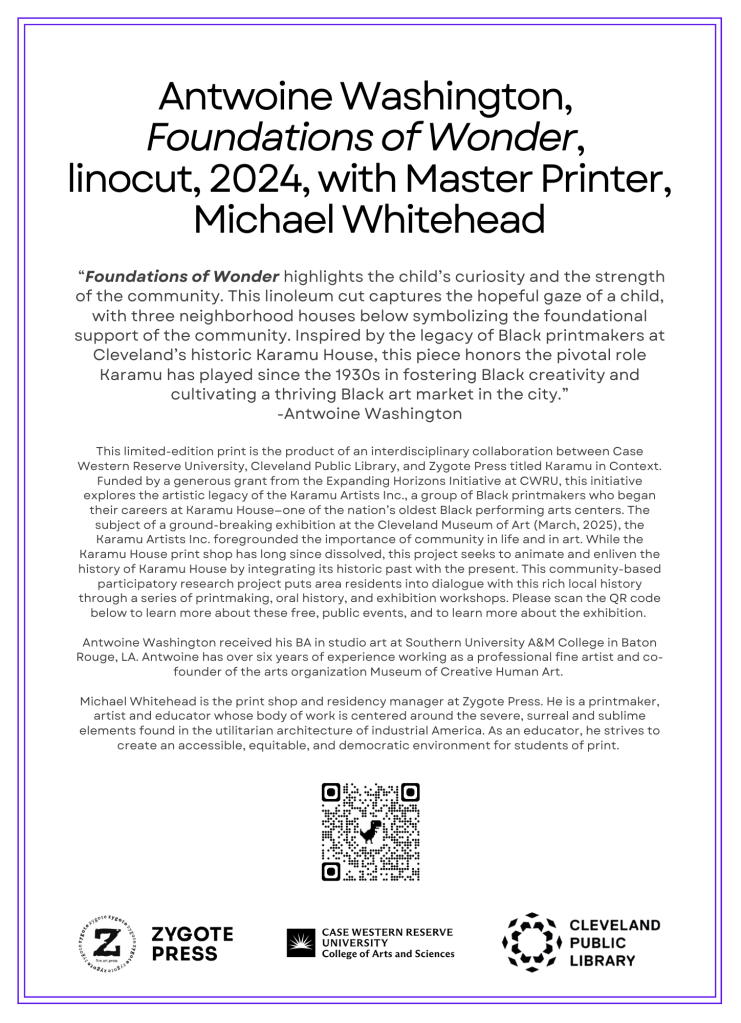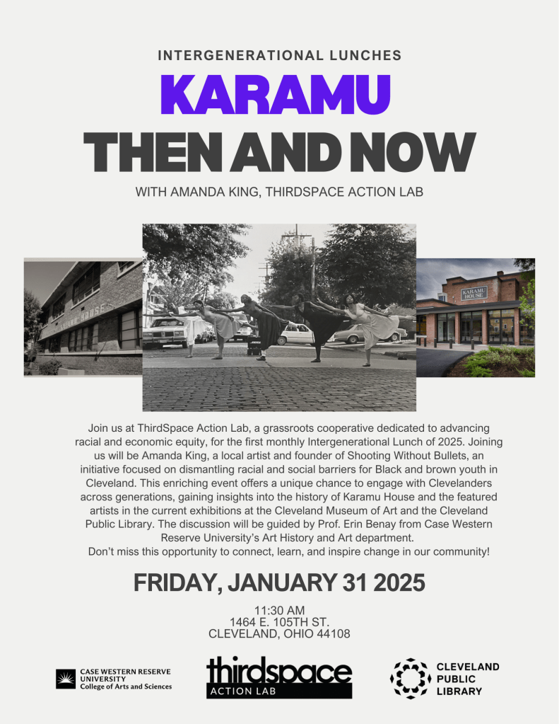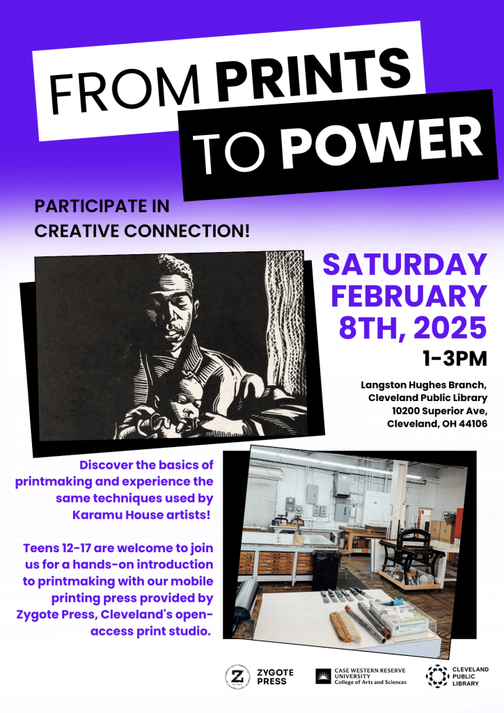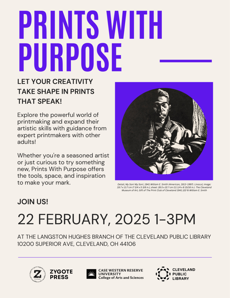 I held a small role in creating advertisements and marketing materials that were engaging for broader audiences with the with the goal to create a broader understanding of the place of Karamu House in Cleveland history, of printmaking in regional art histories, and of the social and racial inequities that have kept those histories untold.